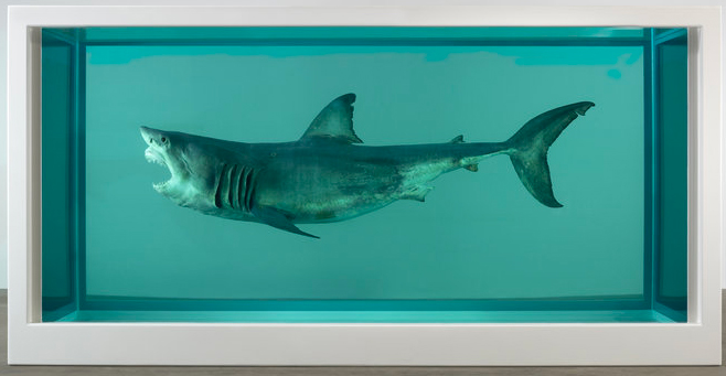 Rappelons que l »artiste » entrepreneur Damien Hirst avait en 1991, alors en pleine gloire (celle des artistes contemporains étant très courte), refilé au galeriste Charles Saatchi, et la demande de ce dernier, un requin formolé pour la somme de 6000 livres, lequel galeriste l’avait revendu 50 000.