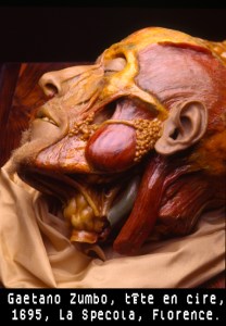 Protégé des Médicis, l’anatomiste sicilien Gaetano Giulio Zumbo (1656 ?-1701), précurseur de la céroplastie et le chirurgien français Guillaume Desnoues (1650-1735) offrent des modèles artificiels d’un réalisme inouï connus dans toute l’Europe et qui furent largement exposés, en Italie, en Allemagne, en France, au Danemark et en Angleterre. Pas sûr que les visiteurs fascinés n’y voyaient que matière à s’informer. Car les pièces sont d’une indiscutable beauté, c’est un fait.